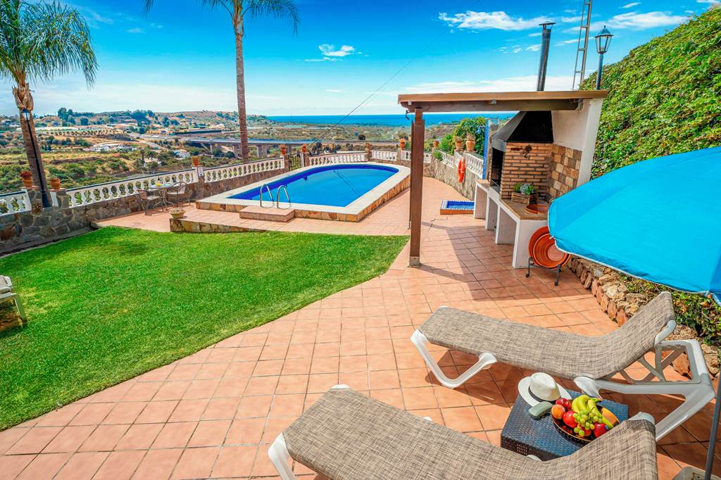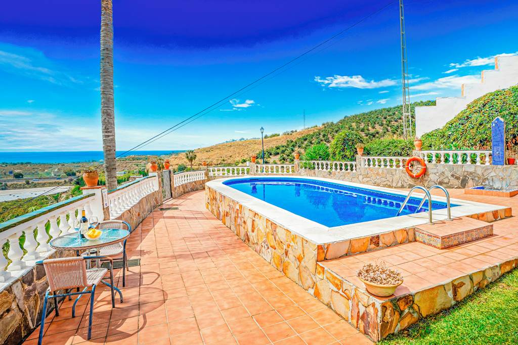 With spectacular panoramic views of the countryside and sea, the Villa Los Sanchez is set within the Rio Seco area of Nerja on Spains southern coast. A shady terrace, private pool, and outdoor alfresco dining facilities allow you to soak up the sun from dusk till dawn. Spacious, rustic, and comfortable, this single storey villa boasts two bedrooms and a bathroom with air conditioning and Wi-Fi throughout the property. Decor inside Villa Los Sanchez follows Spanish tradition with terracotta hues and wooden accents. The kitchen is fully equipped with a hob, oven, microwave, and fridge freezer so you can cook up a feast for the whole family. In the living room, satellite television, a DVD player, and a terrace make evening entertainment easy. With a beach, bars, restaurants, supermarkets, and amenities just a short drive away, this villa is an ideal holiday retreat. ... More