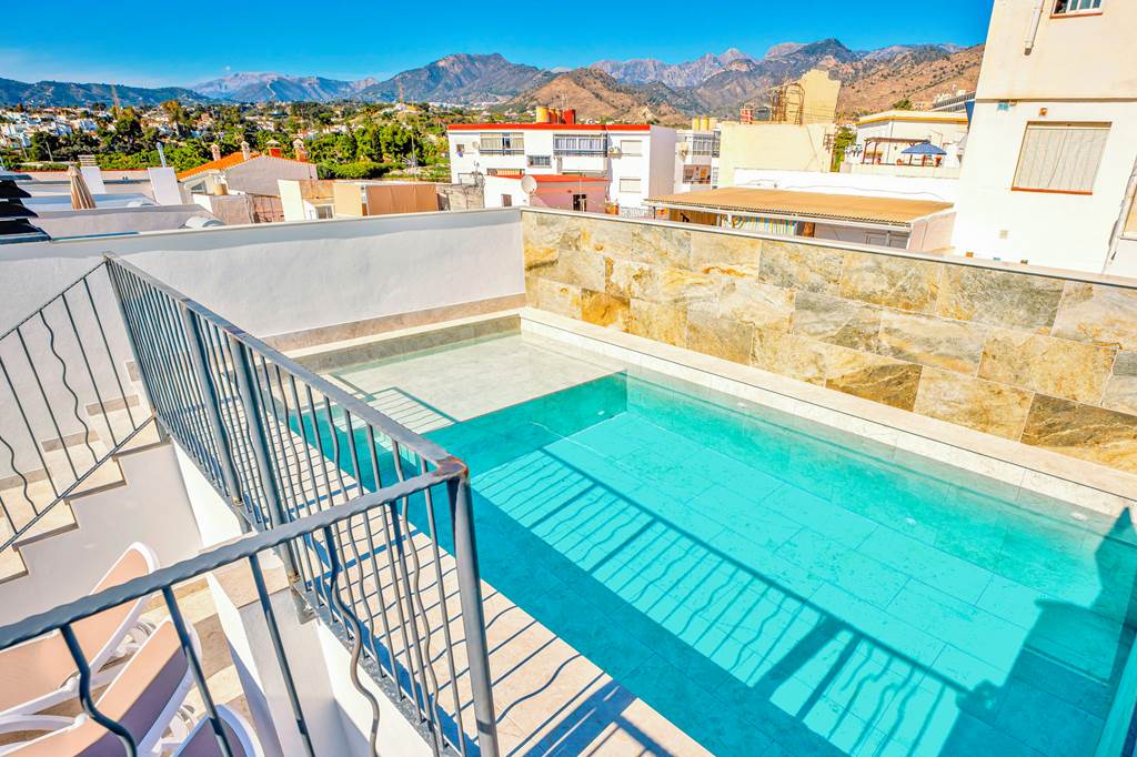 Located in the vibrant centre of Nerja, this villa combines modern living with an unbeatable location. Offering 3 spacious bedrooms and 2 stylish bathrooms, this contemporary home is designed for comfort and convenience. The open-plan living area is bathed in natural light, creating a welcoming and airy atmosphere. The sleek, fully equipped kitchen flows seamlessly into the living and dining spaces, making it ideal for both relaxation and entertaining. A true highlight of this villa is the incredible rooftop pool, where you can relax and soak up the sunshine. The expansive rooftop terrace is great for sunbathing, al fresco dining, or simply unwinding while taking in the feel of the Mediterranean. Just a short stroll from Nerja's charming beaches, restaurants, and shops, this villa offers maximum convenience. ... More
