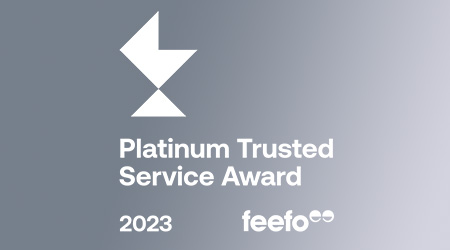 Our customer ratings have averaged above 4.5/5 for several years now on Feefo, one of the UK’s biggest review websites. This has earned us Feefo’s prestigious prize, the Platinum Trusted Service Award!
