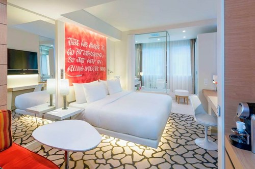 Step into the vibrant world of N'vY Manotel and start your Swiss adventure with a touch of creativity. This ultra-trendy hotel is an art lover’s dream. Tag’s Café is a highlight, featuring six stunning mural frescoes by celebrated New York graffiti artist, Meres One. Admire the eclectic collection of international artwork, including a guitar once owned by the legendary Jimi Hendrix. A stay here will have you ready to face the music. Enjoy unique room décor, fine dining at the hotel’s top-notch restaurant and unwind in the stylish bar. The four-star N'vY Manotel is where creativity and comfort collide, just steps from the main train station. ... More