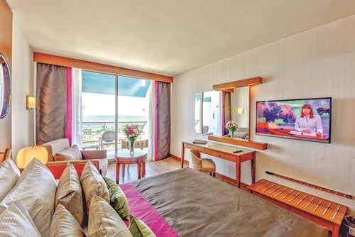 *Local charges apply. Facilities advertised are based on high season and may vary depending on occupancy. High season is generally deemed as the most popular time of year at a resort, hotel or apartment. This is usually, but not necessarily limited to, the peak summer months of mid-May until mid-October. We endeavour to show you images of the actual room described however, this may not always be possible; actual view and/or room size or layout may vary e.g. you may not see an image of a sea view or garden view in the image but you will have the option of booking your preferred view when selecting your preferences.