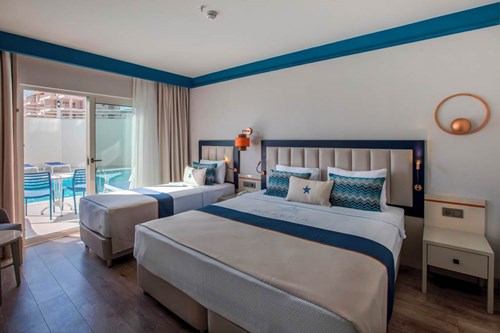 One Free Child Place is available when there are at least 2 passengers paying the full price. There can only be one Free Child Place per room, or per villa, on the booking. With the exception of villa products, multiple Free Child Places can be booked as long as there are at least 2 passengers paying the full price per child place, each Free Child Place is assigned into a different room and there is availability of Free Child Places. Where a party consists of one adult and two children, one child will be charged the full price applicable to their age and the other child will receive the Free Child Place.