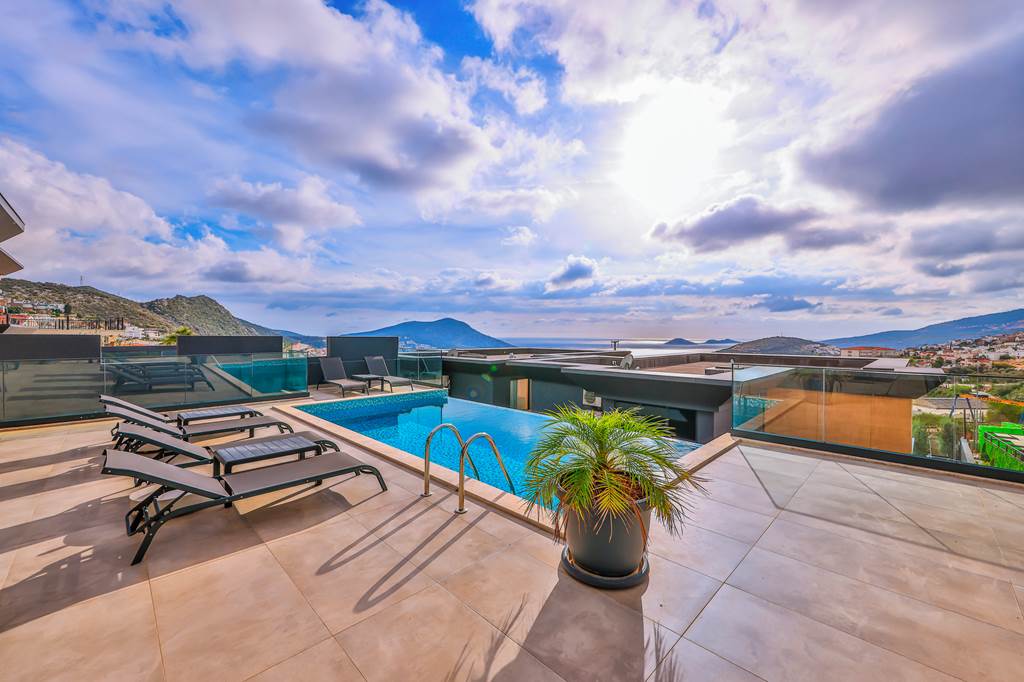 Villa Maiden Asra is a showstopper. Whether it’s a morning coffee on the balcony, a swim in the sparkling pool, or cocktails on the roof terrace - you’ll be in awe of the endless panoramas over Kalkan Bay and the sparkling Aegean Sea. Only a short drive from Kalkan’s bustling centre, excite your taste buds by visiting its famous rooftop bars and restaurants or exploring the old town and discovering its history. The exteriors are all about the wow factor, with a straight-cut architectural design that is sleek and sophisticated. The same can be said for the interiors, which are fenced with large windows that let in seeping sunlight that illuminates the whole villa. Outdoors, the sun terrace is the closest thing to paradise, directly looking out over the awe-inspiring seascape and swathed with lush gardens. The sun-lounger-lined pool is perfect for transitioning between a cooling swim and sunbathing. With multiple chill spots, you can top up the tan on the loungers, swing chairs, or comfy sofas. ... More