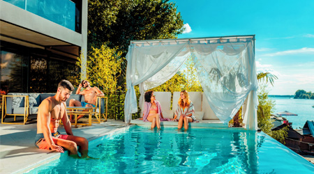 Ah to be flopped by the pool, watching the water ripple in the sun, listening to cool summer sounds. That’s a VIBE holiday right there.