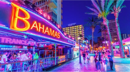 English Square’s your best bet for Benidorm’s much-loved buzz. Bahamas and Beachcomber are 2 popular spots.