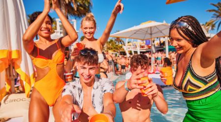 Pop... That’ll just be the sound of Ocean Club in Puerto Banus. It’s famous for its glamorous champagne pool parties.
