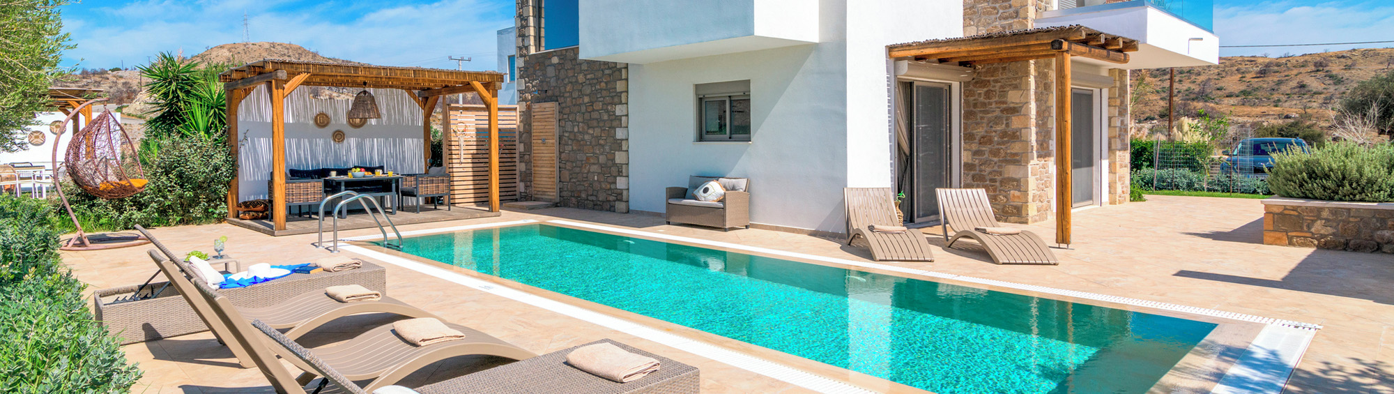Want to wake up to breathtaking mountain views? Get ready to take in the fresh country air, sip wine on a sunlit terrace and explore picturesque villages nearby. Whether relaxing by the pool or taking on hiking scenic trails, you can immerse yourself in the tranquillity and nature of a countryside escape.