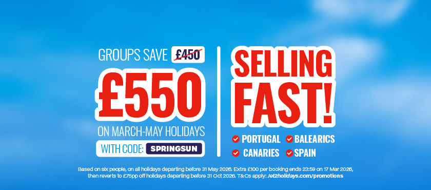 £75pp off ALL holidays, plus an extra £100 off March, April and May holidays with code SPRINGSUN. T&Cs apply.