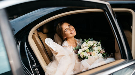Get ready to arrive in style with options ranging from a vintage Rolls Royce to a BMW convertible or white London taxi.